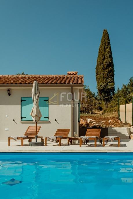 Posebnost te nepremičnine je samostojen objekt velikosti 75 m2 s savno, tušem, WC-jem, pralnico in kuhinjo, pred njim pa je velik bazen velikosti 36 m2 s prostorom za sončenje.