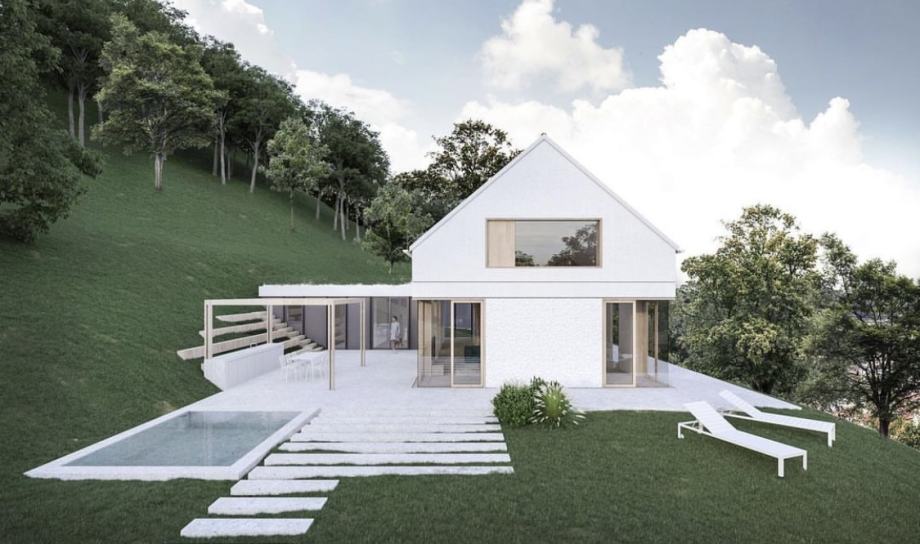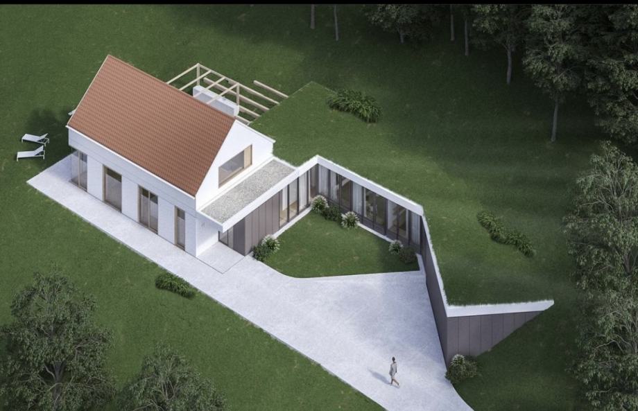 Prva parcela je velikosti 960 m2, ki je delno stanovanjsko zemljišče (491 m2) in delno kmetijsko zemljišče (469 m2). Izdelan je projekt za izgradnjo enostanovanjske hiše etažnosti P+M in pomožni objekt z letno kuhinjo in bazenom. Zemljišče je komunalno opremljeno, pripravljeno na gradnjo. Dostop do objekta je iz javne ceste. Parcela se prodaja vključno s projektno dokumentacijo faze IDZ, IZP, DGD, PZI, plačanim komunalnim prispevkom, hišno številko in pridobljenim gradbenim dovoljenjem.