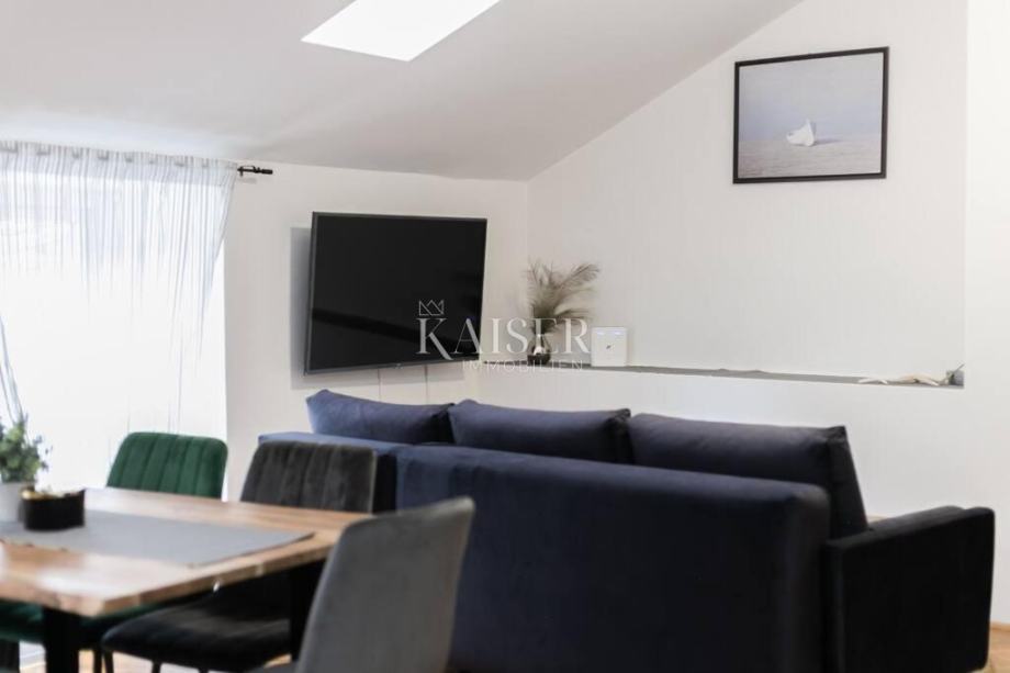 Kaiser Immobilien vam predstavlja čudovito mansardno stanovanje v središču Crikvenice, le 100 metrov od morja. Stanovanje ima skupno bivalno površino 53,23 m2 in se nahaja v mansardi skupno dveh nadstropij. Stanovanje je sestavljeno iz velike dnevne sobe, kuhinje in jedilnice v odprtem konceptu, dveh spalnic, kopalnice in balkona. Stanovanje se prodaja popolnoma opremljeno. Na vhodu v stavbo je nameščen video nadzorni sistem, ki zagotavlja dodatno raven varnosti. Zaradi odlične lokacije in dejstva, da lahko sprejme do šest oseb, ta nepremičnina predstavlja odlično priložnost za naložbo v turistični najem. V neposredni bližini nepremičnine se nahajajo plaža, mestna tržnica, šola, banka, glavni trg in vsi ostali pomembni objekti, potrebni za vsakdanje življenje, zaradi česar je ta nepremičnina enako primerna za stalno bivanje kot tudi za turistične namene. Dokumentacija je urejena. Za vse dodatne informacije se obrnite na agenta: Davor Piškulić davor@kaiser-immobilien.hr +00 385 95 583 8240 WhatsApp, Viber