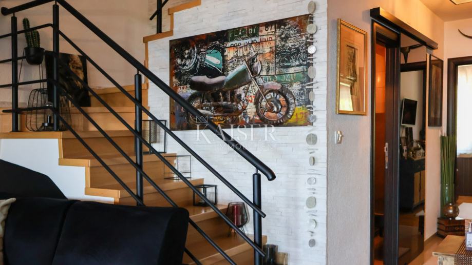 Kaiser Immobilien predstavlja čudovito luksuzno dvonadstropno stanovanje na iskani lokaciji v Crikvenici. Stanovanje ima skupno bivalno površino 161,59 m2 in se razprostira v dveh nadstropjih: - Prvo nadstropje vključuje veliko dnevno sobo v odprtem konceptu s kuhinjo in jedilnico ter dostopom do 12 m2 velike pokrite zimske terase, nato pa ga sestavljajo prostoren hodnik, glavna spalnica in prostorna kopalnica. - V drugo nadstropje se dostopa po notranjih stopnicah, ki vodijo v vhodno dvorano z delovnim kotičkom, nato v hodnik s spalnico, ki je preurejena v garderobno sobo, kopalnico, dnevno sobo v odprtem konceptu z jedilnico in prostorom, kjer je predvidena kuhinja, prostorno spalnico in prostorno pokrito teraso velikosti približno 40 m2 z ležalniki in jacuzzijem. Dostop do terase je možen iz delovne sobe in dnevne sobe. Dnevna soba je opremljena z veliko kotno sedežno garnituro in 100-palčnim LCD televizorjem, kuhinja po meri pa je opremljena z vsemi potrebnimi gospodinjskimi aparati. Glavna spalnica ima zakonsko posteljo. Terasa je fantastično zasnovana, v celoti pokrita s tendo, jacuzzijem - hidromasažnim bazenom, ki ga je mogoče pozimi ogrevati, jacuzzi pa je urejen kot neskončni bazen, iz katerega je neoviran panoramski pogled na morje, otok Krk, Učko in Velebit. Terasa zagotavlja 100% zasebnost. Stavba je nova, zgrajena leta 2015, stanovanje pa je bilo popolnoma prenovljeno in dokončano leta 2024. Stanovanje je stilsko opremljeno do najmanjše podrobnosti. Stanovanje je brez napak in ne potrebuje nobenih naložb. Stavba, fasada in streha so zgrajene iz kakovostnih materialov. Ogrevanje in hlajenje je rešeno s klimatskimi napravami, medtem ko ima dnevna soba v prvem nadstropju stanovanja kamin na drva kot dodatno alternativo ogrevanja. Stanovanje je opremljeno z protivlomnimi vrati in zvočno izoliranim PVC stavbnim pohištvom. Stanovanje se prodaja popolnoma opremljeno. Stanovanju pripada tudi 6 m2 velika vrtna lopa za shranjevanje drv, uporaba skupnega vrta znotraj stavbe, ki je ograjen z veliko ograjo, in eno parkirno mesto. Stanovanje je pod video nadzorom. Nepremičnina ponuja 100% zasebnost. V delovni sobi je prehod, ki odpira dodatnih približno 25 m2 prostora za shranjevanje, s čimer se stanovanje poveča na 186 m2 bivalne površine. Nepremičnina se nahaja v neposredni bližini vseh pomembnih objektov, 500 m od morja in 700 m od centra mesta. Pred apartmajem je tudi avtobusna postaja Citybus, katere linija poleti vozi vsakih 30 minut, pozimi pa vsako uro, tako da ste lahko za samo 1,30 evra v nekaj minutah na plaži ali v centru. Z ustrezno dokumentacijo in lastnim parkirnim mestom ta nepremičnina ponuja vse, kar potrebujete za razkošno in udobno življenje. Ne zamudite te edinstvene priložnosti, da postanete lastnik te nepremičnine s panoramskim pogledom na morje, idealne za sprostitev in uživanje v čudoviti okolici. Ta nepremičnina je idealna za vse, ki si želijo biti blizu morja in osnovnih storitev, ki želijo živeti v luksuznem stanovanju, opremljenem in urejenem do zadnje podrobnosti, ter ki si želijo popolne zasebnosti. Nepremičnina je idealna tudi za turizem. Oddaljenost od stanovanja: Trgovina: Špar 200m, Gavranović 100m Reka: 35km Letališče: 25km Zagreb: 165km Novi Vinodolski: 7km Za vsa vprašanja se obrnite na agenta: Davor Piškulić davor@kaiser-immobilien.hr +00 385 95 583 8240 WhatsApp, Viber