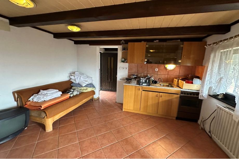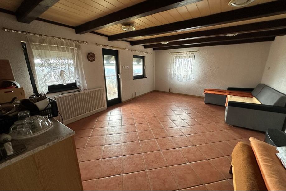 S skupno površino 64,3 m² , od tega 41,6 m² uporabne površine, obsega tudi prostorni bivalni prostor in kopalnico, ter kleti. Idealna je za par ali posameznika, ki si želi sprostitve v objemu narave.