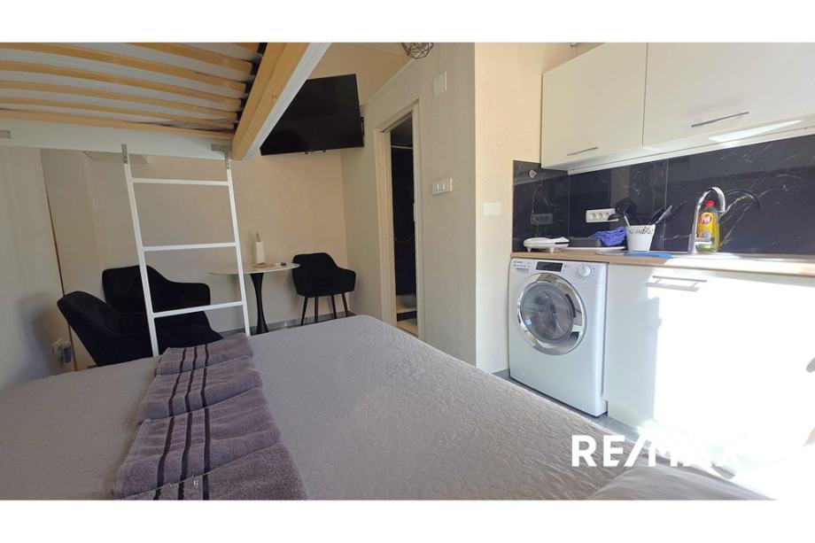 .Stanovanje, ki je trenutno v prodaji, ponuja 17,5 kvadratnih metrov bivalne površine, z južno lego. Zgrajeno je bilo leta 1900, v zadnjih letih pa redno vzdrževano. Prva plošča je betonska, medtem, ko je nosilnost druge etaže z lesenimi tramovi. Visoki stropovi omogočajo zračnost kljub majhni kvadraturi prostora. Okno ima tudi polkna z nastavljivimi lamelami, kar zagotavlja zatemnitev v vročih in sončnih dneh. Objekt se razprostira na 4 etažah ter vključuje skupno 9 stanovanj. Stanovanje nima upravnika..