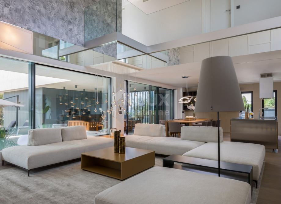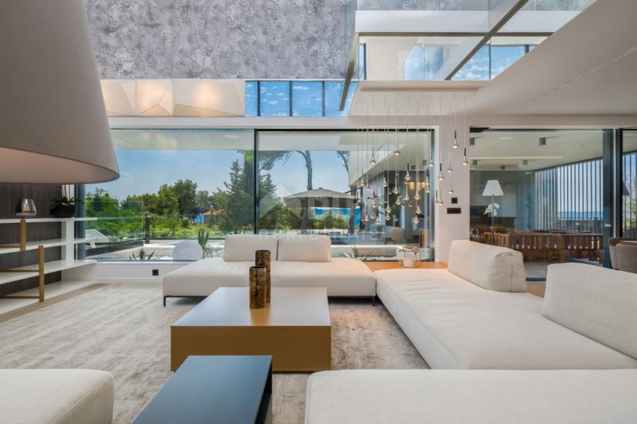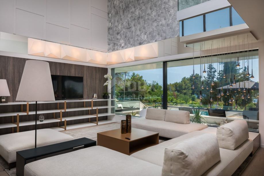 Prodamo čudovito vilo, ki se nahaja severno od mesta Zadar, na iskani lokaciji. Od plaže in drugih družabnih objektov je oddaljen le 1 km. Vila se nahaja na velikem, ograjenem vrtu in nudi popolno zasebnost ter čudovit pogled na morje in otoke. Poleg velikega prelivnega bazena in prostora za sončenje je letna kuhinja z žarom in prostorom za druženje ter tlakovano dvorišče, kjer lahko parkirate cca 15 avtomobilov. Notranjost vile sestoji iz kleti, pritličja in nadstropja. Vse etaže so povezane z notranjimi stopnicami. V kletni etaži je garaža za dva avtomobila, sprehajalni prostor, pralnica in prostor za vzdrževanje hiše. Spodaj so spa sobe in telovadnica z dostopom do terase in bazena. Glavni vhod v vilo je v pritličju. Po hodniku pridete v dnevno sobo z jedilnico in kuhinjo kot skupnim prostorom. Spodaj je spalnica s kopalnico in izhodom na pokrito teraso, nato delovna soba, WC za goste, shramba in še ena pokrita terasa. Prvo nadstropje je razdeljeno na štiri spalnice z lastnimi kopalnicami in dve pokriti terasi. Eden pripada glavnemu prostoru, drugi, z jacuzzijem, pa ima dostop iz vseh prostorov. Vila je v celoti opremljena in opremljena. Pri dekoraciji so bili uporabljeni vrhunski materiali in oprema, skrbno izbrani detajli pa so tej nepremičnini dali poseben čar. Tla so keramika in parket. Sistem hlajenja in ogrevanja je preko toplotne črpalke; v vsakem prostoru je dodatno vgrajeno talno ogrevanje s termostatom. Okenski okvirji so aluminijasti s komarniki in troslojnim steklom. Hiša je varovana z video nadzorom. Zaradi svoje privlačne lokacije, moderne in funkcionalne dekoracije ta vila ni le idiličen kraj za počitek in sprostitev, ampak tudi odlična priložnost za turizem.