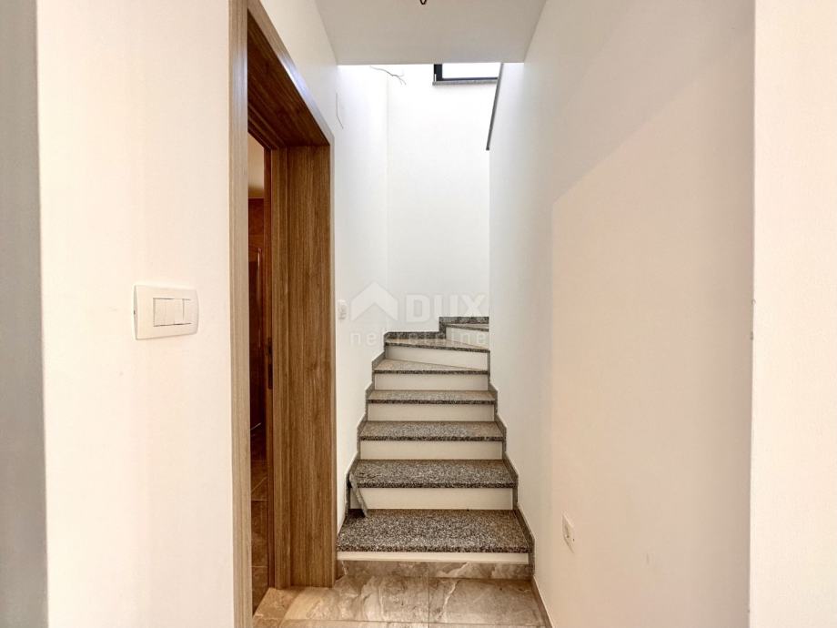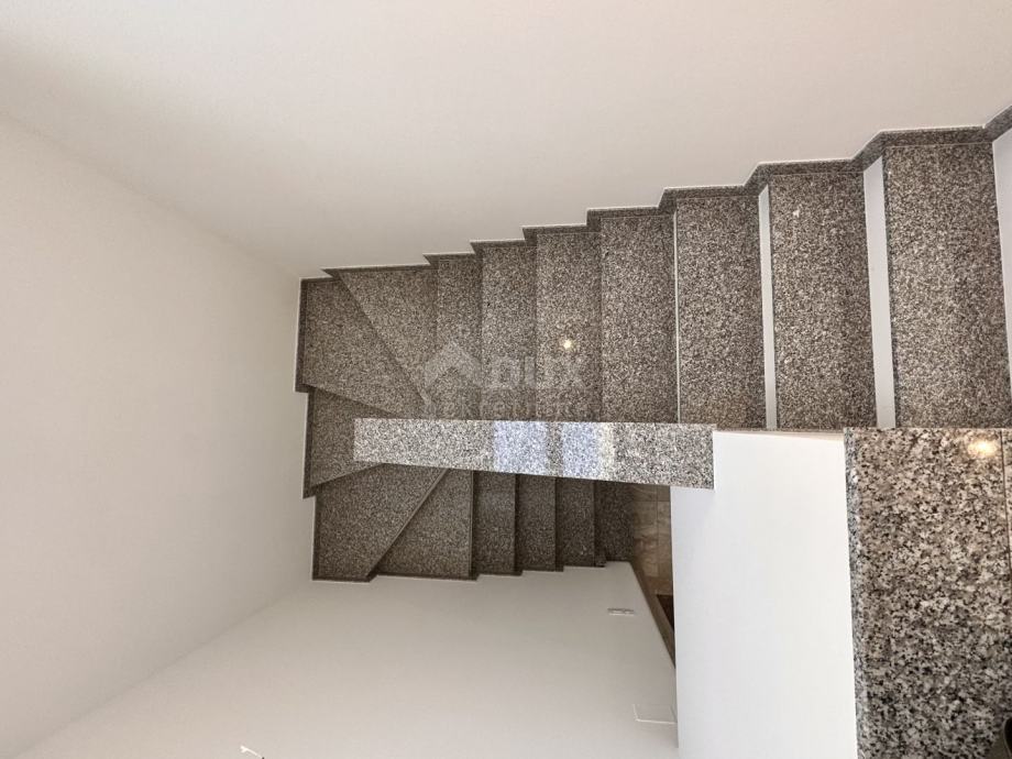 Prodamo čudovito dvoetažno stanovanje velikosti 101 m2 s pogledom na morje. Apartma se nahaja v manjši stanovanjski stavbi na začetku slepe ulice, 400 metrov od morja. Spodnjo etažo sestavljajo dnevna soba s kuhinjo, hodnik, garderoba, kopalnica, stopnišče in pokrita terasa, v drugi etaži pa dve spalnici, kopalnica, shramba in pokrit balkon. S terase in balkona v prvem nadstropju je panoramski pogled na morje. Stanovanju pripada eno parkirno mesto. V apartmajih so predvidene klimatske naprave za ogrevanje in hlajenje. Trenutno je objekt v roh-bau fazi. Predviden zaključek je spomladi 2023. Prodaja se na ključ. Investitor je v regiji poznan po kakovosti gradnje. Tloris in popis materiala lahko dobite neposredno pri agentu.
