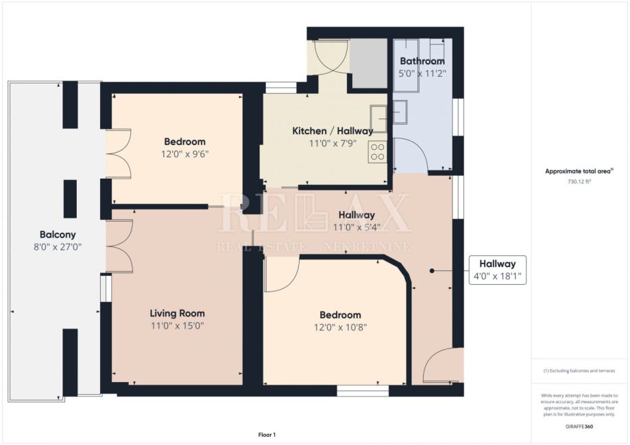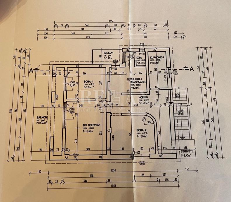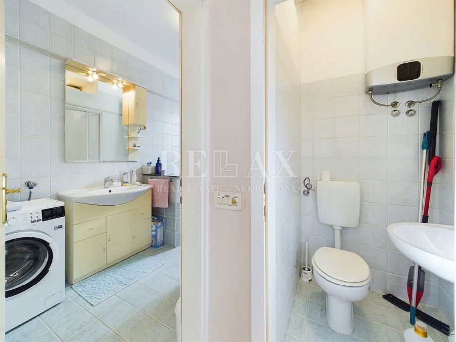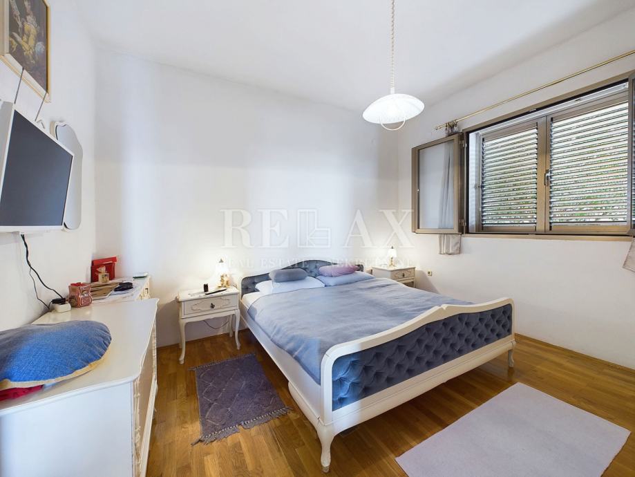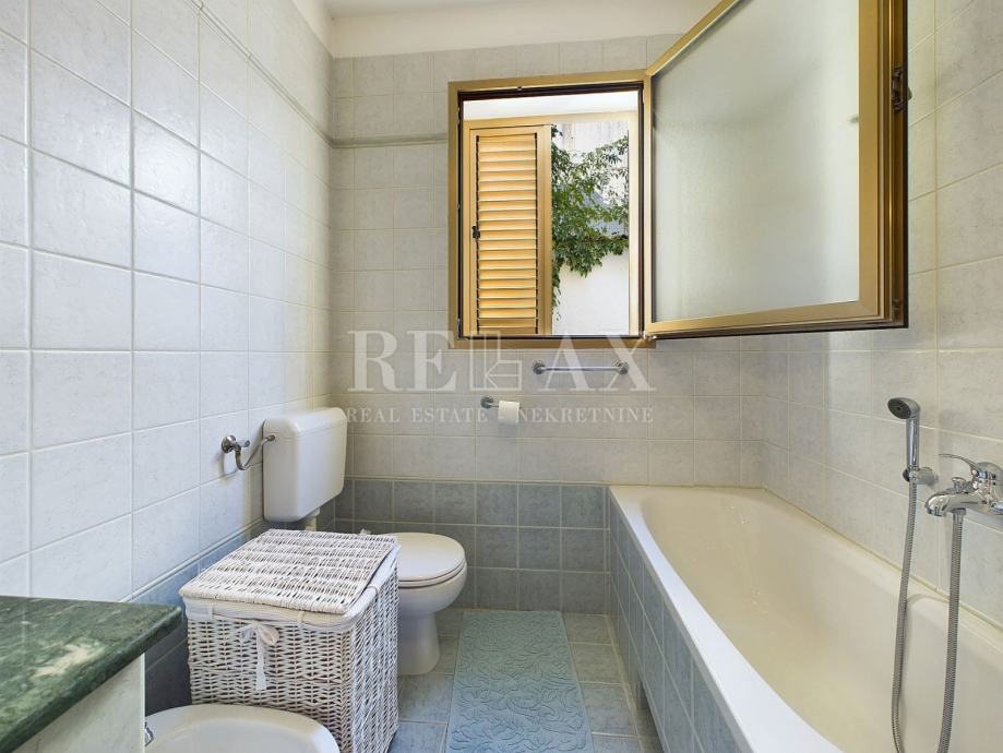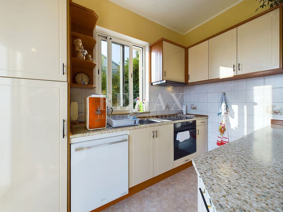 V prvem nadstropju je moderno urejeno stanovanje z dvema spalnicama, hodnikom, kopalnico in veliko dnevno sobo s panoramskim razgledom na morje. Balkon v prvem nadstropju je delno pokrit in ponuja popoln prostor za sprostitev.