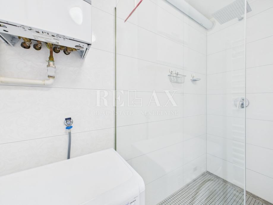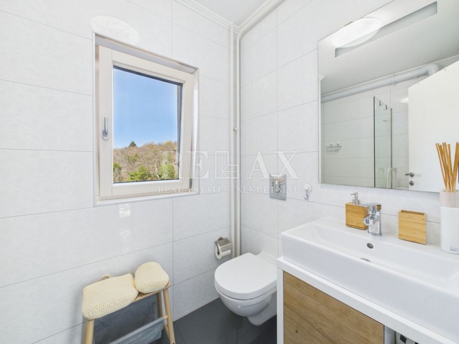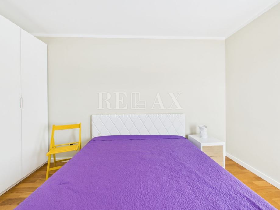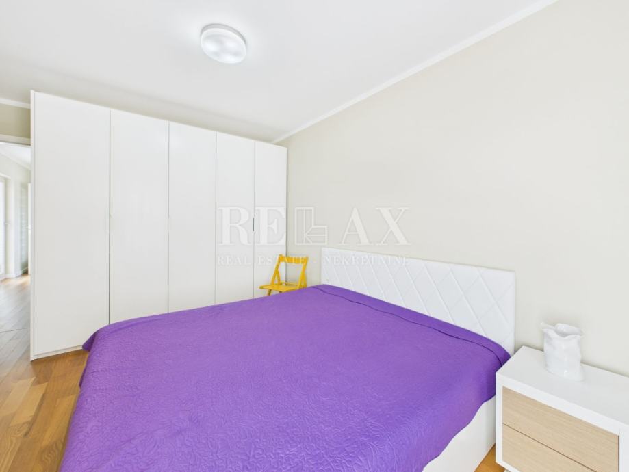 Kakovostna notranja in zunanja oprema naredita to stanovanje izjemno privlačno. Mizarstvo je kombinacija lesa na notranji strani in aluminija na zunanji, z električnimi roletami, ki zagotavljajo dodatno zasebnost in zaščito pred soncem. Tla so obložena s parketom, dodatno varnost in udobje pa zagotavlja video domofon. Stanovanje je v celoti opremljeno in pripravljeno na takojšnjo vselitev.