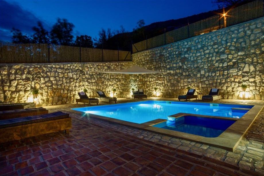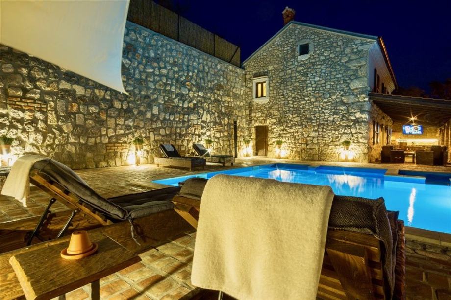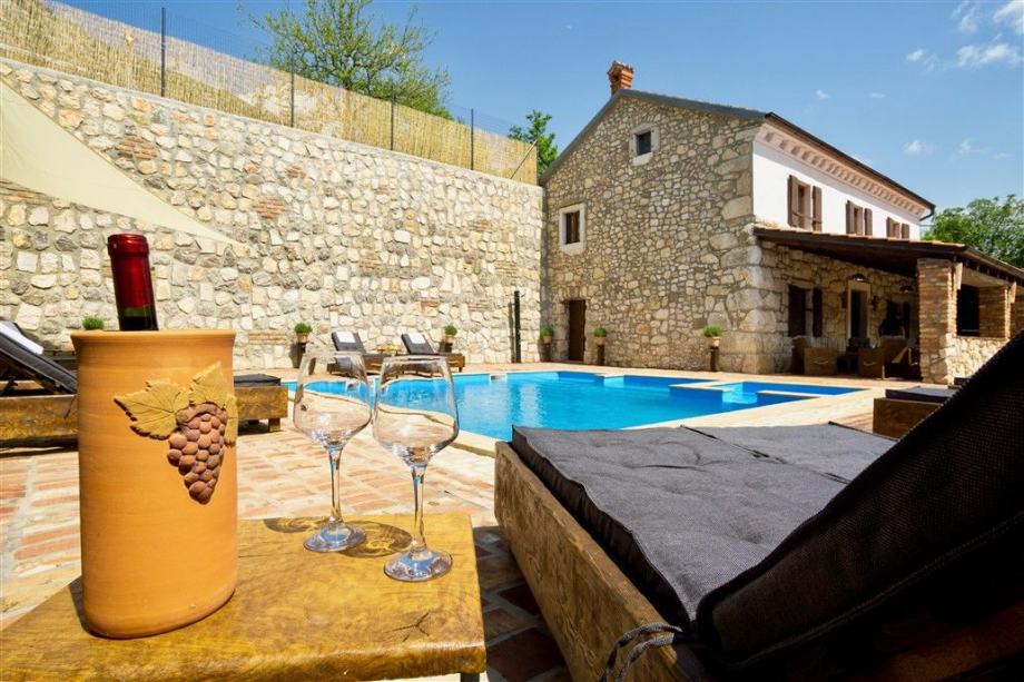 Lepo urejena vila se nahaja na hribu nad Crikvenico na zelo mirni lokaciji. Hiša je urejena v antičnem slogu v mediteranskem slogu in je zgrajena iz kamna. V letošnjem letu je bil v celoti obnovljen in dokončan. Sestavljen je iz pritličja in prvega nadstropja. Pritličje je zasnovano tako, da se nahaja ena spalnica z lastno kopalnico, ločen WC, dnevna soba, velika jedilnica in kuhinja. V nadstropju so štiri spalnice, vsaka ima svojo kopalnico z WC. Sobe so urejene tako, da ima vsaka klimatsko napravo za ogrevanje in hlajenje ter televizijo. Vrt sestavlja pokrita terasa pred hišo, kjer je velika miza za druženje in peko na žaru. Postavljen je velik bazen, nadstrešek pod katerim je postavljena biljardna miza in zasnovana kot prostor za druženje. Ob cesti so postavljeni kamniti zidovi, ki lastniku omogočajo popolno zasebnost. Pred vhodom je ograjeno parkirišče za štiri avtomobile. Ta kamnita hiša je odlična naložba z utečenim poslom ali pa je možno uživati v miru in tišini.