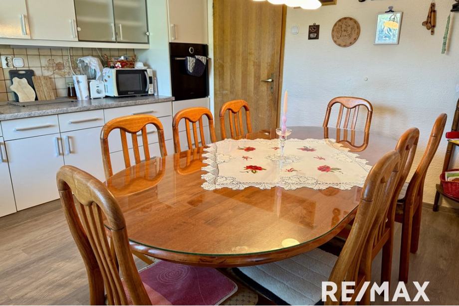 RAZPOREDITEV: 4 spalnice, 2 dnevni sobi, 2 kuhinji, 1 kopalnica, 2 WC, Balkon, shramba in klet