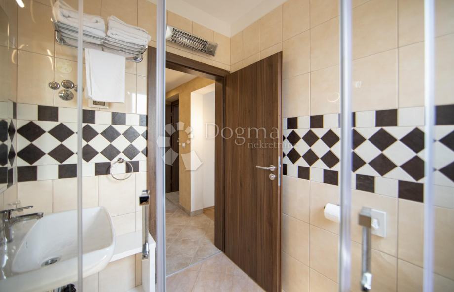 Ta čudovit družinski kompleks z raznoliko bivalno površino 1.475 m2 se nahaja znotraj omenjenega naselja. V kompleksu je trenutno ekonomsko in ekološko kvaliteten hotel v štirih nadstropjih 716 m2, s 15 dvoposteljnimi sobami, ki ima dobro uveljavljeno gostinsko dejavnost z restavracijo in ustrezno kulinariko, ki ustreza splošnim pogojem poslovanja gostinskih lokalov veliko večjih gostov. Vsaka soba v hotelu je unikatno opremljena z motivi mest Istre, ki gosta predstavi destinacijo, v kateri se nahaja, in je opremljena z visokokakovostnimi objekti in opremo, vsebuje čudovite terase in balkone za uživanje v sproščujočih trenutkih. . Ob vstopu ima hotel sodobno rustikalno recepcijo z barom, udobnim bivalnim prostorom in informacijsko sobo za goste, ki ima dostop do osupljivega ogrevanega bazena v sklopu hotela. Bazen je velik 55 m2 z ogrevano vodo, v sklopu bazena pa je plaža z ležalniki in terasa za uživanje v dobrotah domače družinske kuhinje, ločena savna, solna soba in čudovit ogrevan jacuzzi. Hotel je bil pred nekaj leti na novo zgrajen z visokokakovostnimi materiali in vsako leto si sistematično prizadevamo za izboljšanje kakovosti in ekonomičnosti objekta v obliki ogrevanja, plinske inštalacije, visokokakovostne klimatske naprave in solarnih panelov, ravnih streh, ki zbirajo vodo za vzdržujemo komarnike, pohištvo po meri v vseh prostorih, kamnito stopnišče in visoko kvalitetno keramiko v vseh enotah.