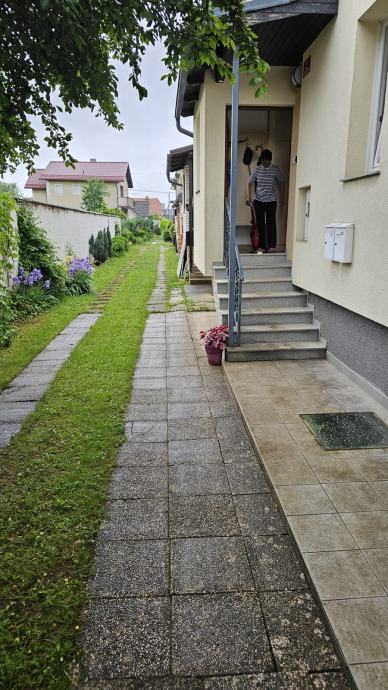 V vrstni hiši v mirni neprometni Ulici Janka Mlakarja 9 oddam etažno visokopritlično stanovanje 65 m2 z lepim razgledom na Pohorje na severu in na mesto na jugu, vseljivo od 15. novembra 2025 dalje. Vključuje kuhinjo, dnevno sobo, spalnico, otroško sobo, zimski vrt, kopalnico, WC, hodnik, vetrolov. Hiša je solidno izolirana, klimatizirana, gretje s toplotno črpalko, s kolektorji in s hibridno sončno elektrarno, temperatura prostorov in sanitarne vode je vse leto enaka. Pred hišo je 20 m2 travnate grede. V celoti je podkletena, kjer je še 65 m2, med drugim garaža, shramba in še poseben prostor, primeren za mirno dejavnost ali razvedrilo. Vključeni vsi sodobni priključki, zagotovljena dva parkirna prostora, stroški v celoti so ca 200 €. Primerno za par ali največ za tričlansko uglajeno družino, raje nekadilci in brez hišnih ljubljenčkov. Opremljeni sta kuhinja in kopalnica, v zgornji enoti vrstne hiše z lastnim vhodom biva trenutno uglajen in redoljuben zakonski par; soseska je v glavnem prijazna. Če ste zainteresirani, se predstavite po mailu čim popolneje, in to na: vladokenda@gmail.com.. Lepo prosim, ne začnite zanimanja najprej z zahtevo za ogledom, kajti ta bo možen šele potem, ko bo z obeh strani vse jasno na daljavo.