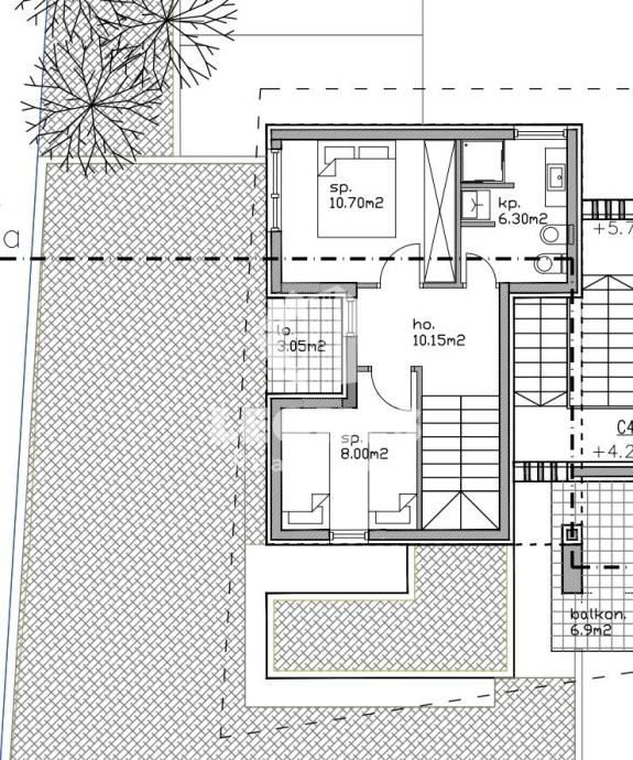 V drugem nadstropju sta dve spalnici s kopalnico in skupno ložo.