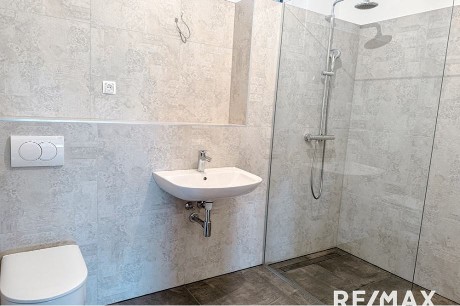 - Izhod na 30 m² veliko pokrito teraso s pergolo in atiko ter zelenico cca 150 m² (popolno za ureditev vrta, postavitev bazena ali masažnega bazena)
