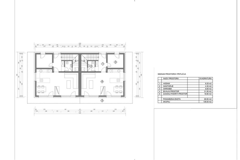 -Odprt dnevno-bivalni prostor (kuhinja + jedilnica + dnevna soba z izhodom na teraso)