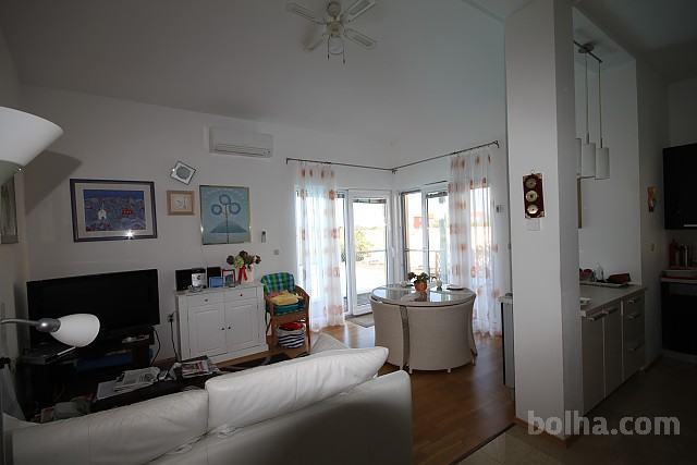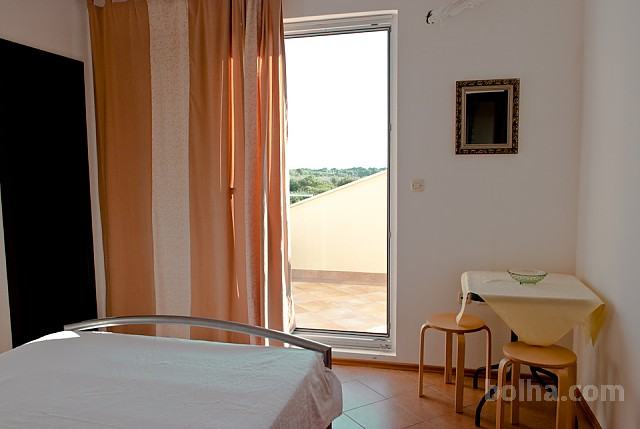 Drugo nadstropje: V drugem nadstropju se nahaja prostoren dvosobni apartma, ki je sestavljen iz studia in ene ločene spalnice. Apartma vključuje dve kopalnici, kar zagotavlja dodatno udobje za goste, in lahko sprejme do šest gostov. Posebno privlačnost predstavljata dve terasi, s katerih se odpira čudovit razgled na morje in Brione.