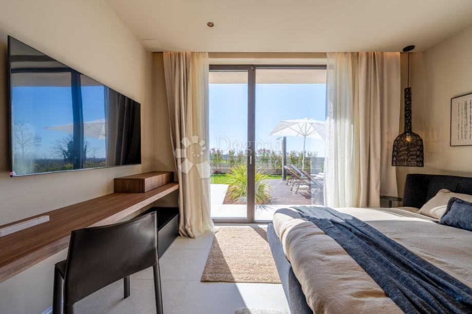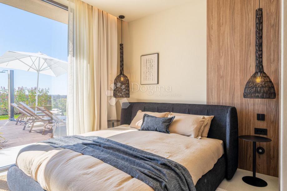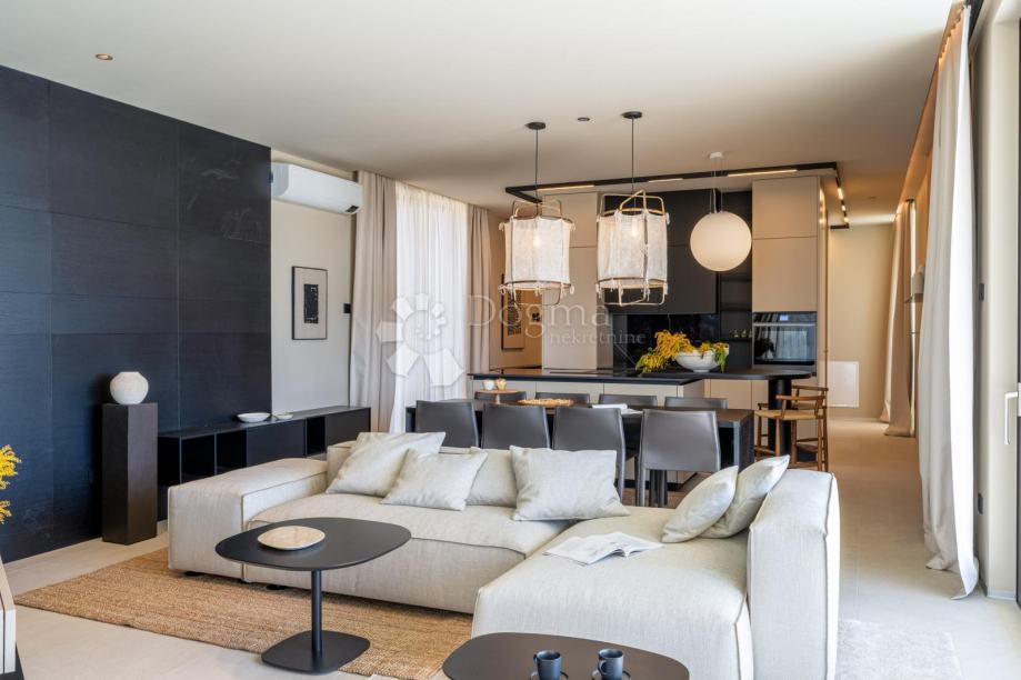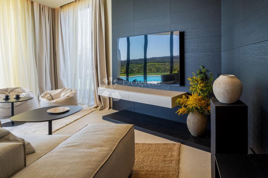 W wyjątkowej lokalizacji, na nowo wybudowanym osiedlu (zupełnie nowa infrastruktura), znajduje się ten nowoczesny, parterowy dom o doskonałym wzornictwie i jakości, w pełni wyposażony. Zbudowany w pierwszym rzędzie osiedla, tuż obok terenów zielonych i gajów oliwnych, gwarantuje otwarty widok na morze w oddali. Willa jest w pełni zautomatyzowana dzięki inteligentnemu systemowi domowemu Loxone, obejmującemu m.in. inteligentną ładowarkę dla samochodów elektrycznych.