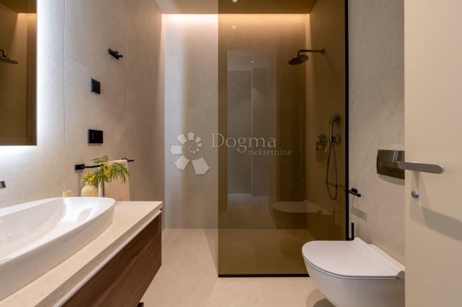 Wszystkie cztery łazienki wyposażone są w kabiny prysznicowe wykonane na zamówienie, przeszklone od podłogi do sufitu, a także najwyższej jakości ceramikę sanitarną i urządzenia sanitarne.