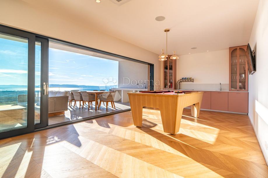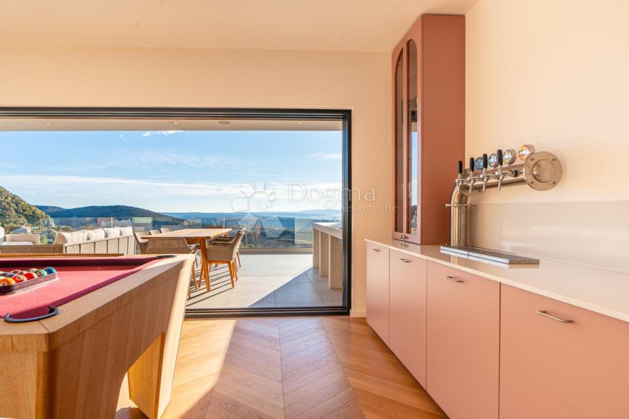V mirnem in dvignjenem predelu Hreljina, nedaleč od Reke, se nahaja ta luksuzna vila, ki na novo definira eleganco in udobje. Z arhitekturo, ki se harmonično zliva z okoljem in neverjetnim panoramskim pogledom na morje, ta nepremičnina ponuja popolno ravnovesje zasebnosti, luksuza in vrhunske opreme. Glavne značilnosti nepremičnine Površina vile: 400 m² razporejenih v treh nadstropjih Dvorišče: 500 m2 urejeno z ogrevanim neskončnim bazenom 32 m² in teraso za sončenje Zasnova: Popolnoma opremljena in opremljena z luksuznim pohištvom vrhunskega dizajna po meri Lokacija: Dvignjena lega na Hreljini s panoramskim pogledom na morje Notranjost Prostor - Vrhunsko oblikovana notranjost za popolno uživanje Klet - Wellness in fitnes V kletnih prostorih se nahaja wellness s finsko savno in jacuzzi, telovadnica in sanitarije. Pritličje - osrednji bivalni prostor in spalnice: Osrednji del vile sestavlja prostorna dnevna soba odprtega koncepta, jedilnica in kuhinja, opremljena z vrhunskimi aparati Miele in hladilnikom za vino, ki je odlično zasnovana za udobje in druženje. Dve spalnici z lastnima kopalnicama zagotavljata zasebnost in razkošje, vsaka pa ima neposreden dostop do urejenega vrta. Zunanji prostor dopolnjuje velika pokrita terasa z ogrevanim neskončnim bazenom in teraso za sončenje, idealna za sprostitev in uživanje v pogledu na morje. Praktičnost zaokroža neposreden dostop do garaže s kapaciteto za dva avtomobila. Prvo nadstropje - zasebne sobe in dnevna terasa: Prvo nadstropje vile je namenjeno uživanju. Na voljo sta ločeno stranišče, dve glavni spalnici, vsaka s svojo kopalnico, medtem ko ima ena od njih zasebni balkon za dodaten občutek intimnosti. Osrednji del etaže zavzema prostoren dnevni prostor, opremljen s hišnim kinom s projektorjem, barom z vgradnimi pomivalnimi stroji, hladilniki in točilnico za pivo. Na voljo je tudi miza za biljard po meri, idealna za sprostitev in zabavo. Prostorna panoramska terasa dodatno poudarja razkošje tega prostora, z zunanjo kuhinjo, sedežno garnituro iz tikovine in osupljivim pogledom na morje, kar ustvarja popolno okolje za druženje in sprostitev. Vrhunska tehnologija in oprema Ogrevanje in hlajenje: Toplotne črpalke Daikin za talno ogrevanje in bazen ter osem inverterskih klimatskih naprav Samsung Pametni dom: Alarmni sistem, video nadzor, električni polnilnik v garaži Unikatni detajli: Jedilna miza iz braškega kamna, modularne sedežne garniture Feydom in drugo dizajnersko pohištvo Zabava in udobje: domači kino, po meri izdelana miza za biljard, notranji in zunanji ozvočenje ter zatemnitvena LED razsvetljava. Ta luksuzna vila ni le dom – je oaza, ustvarjena za uživanje, idealna tako za družino kot za ekskluzivni turistični najem. Pripravljeno je na vselitev in ponuja edinstveno priložnost za razkošen življenjski slog. Kontaktirajte nas in si zagotovite svoje mesto v tej luksuzni vili. Patrik Malešević GSM: +385 95 350 9590 patrik.malesevic@dogma-nekretnine.com