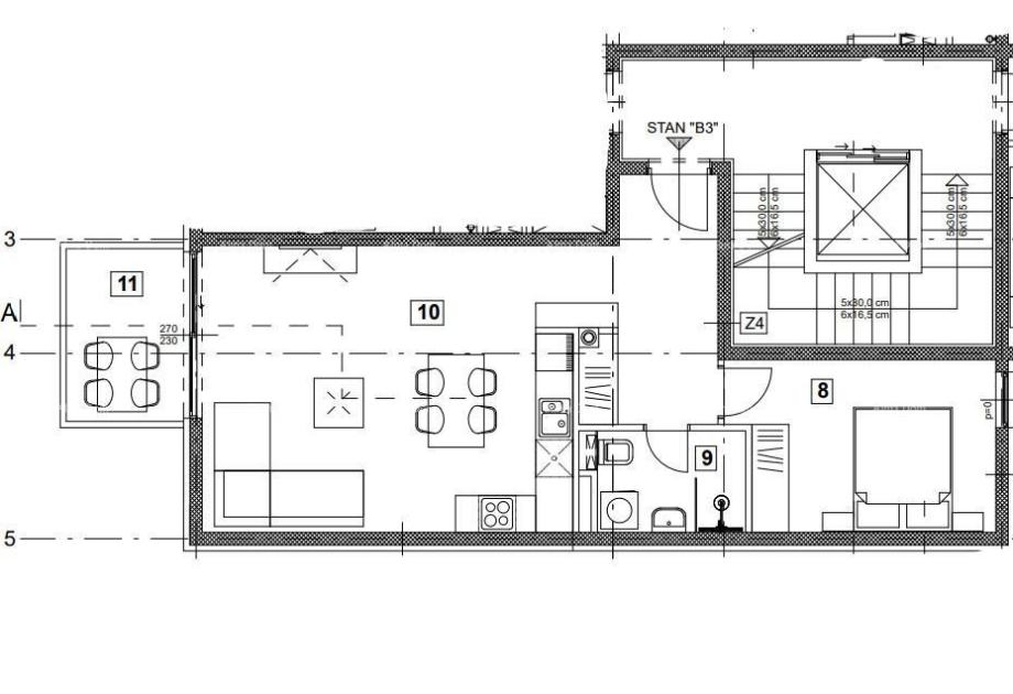 Stan B3, velikosti 52,86 m², sestavljajo: