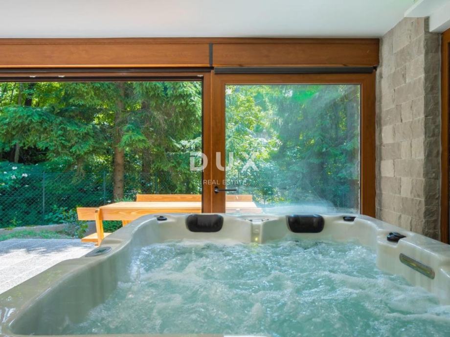 Posredujemo pri prodaji čudovite hiše v pravljičnem okolju! Samostojna hiša novejše gradnje se nahaja na posebni lokaciji, obdani z zelenjem. Predstavlja edinstveno priložnost za vikend ali investicijo, glede na dobro uveljavljeno dejavnost oddajanja nepremičnin. Hiša ni montažna. Sestavljena je iz pritličja in prvega nadstropja. V pritličju se nahaja wellness prostor z jacuzzijem in savno ter izhod na veliko teraso in mirno zeleno okolico. V pritličju se nahaja tudi dnevna soba s kuhinjo in jedilnico. V zgornjem nadstropju sta dve spalnici in dve kopalnici ter prostorna pokrita terasa. Ena glavnih prednosti nepremičnine je njena lokacija v samem središču Gorskega Kotra. Bližina Fužinskega jezera in Narodnega parka Risnjak sta zadosten razlog za ogled te nepremičnine! Priporočilo posrednika!