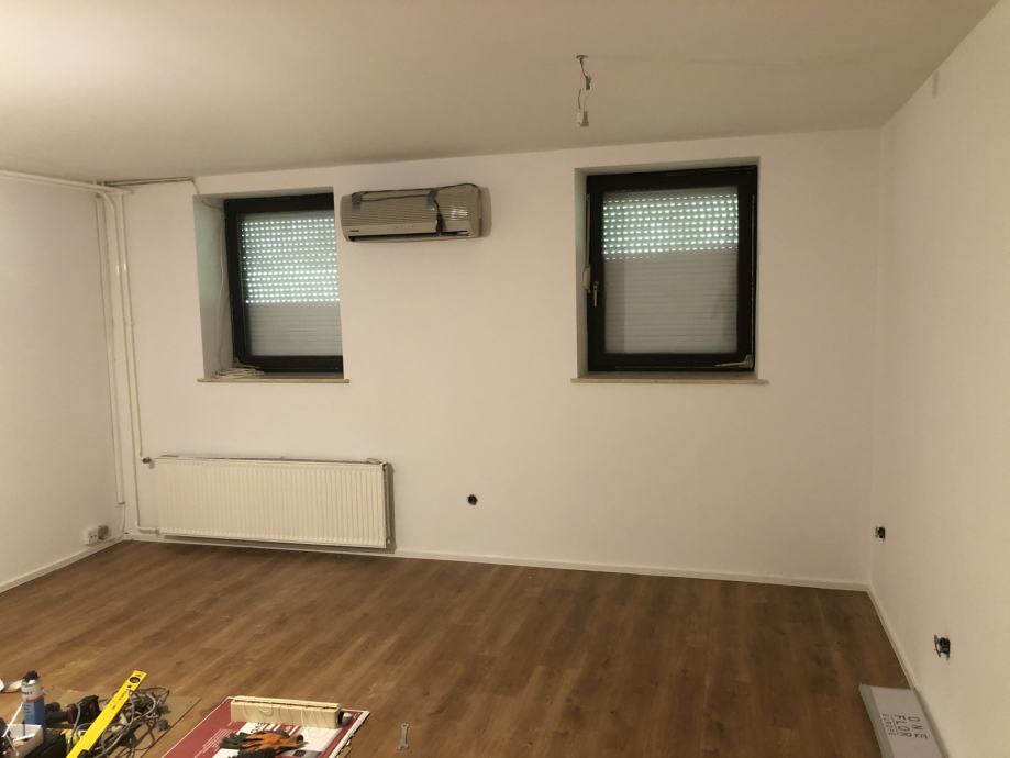 kopalnica obnovljena in opremljena . Velik hodnik pripravljen za namestitev kuhinje. Dnevni prostor- obnovljene stene in tla in prazen.