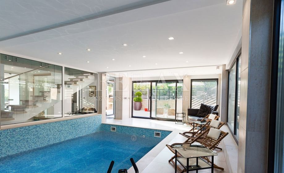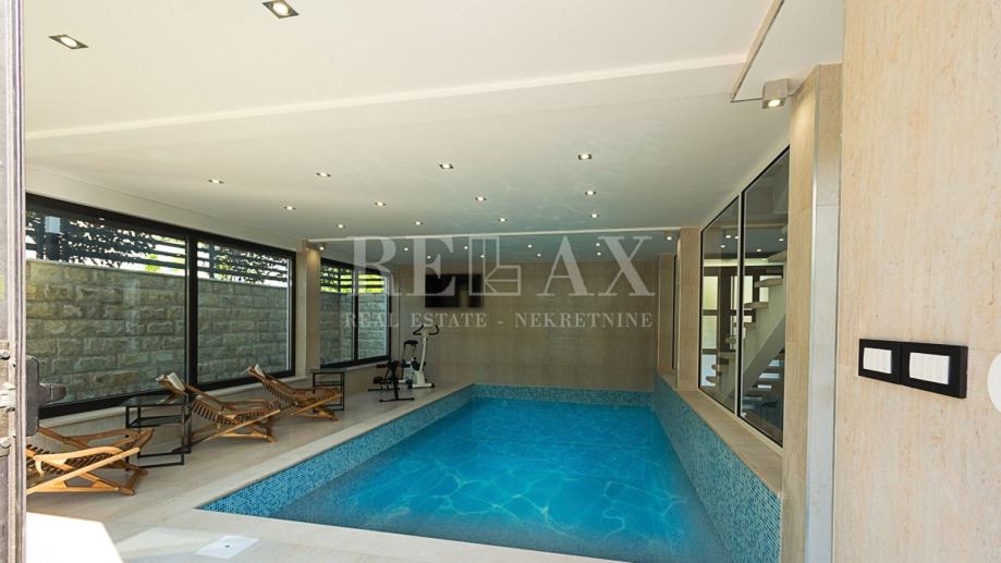 V pritličju je dnevna soba, kuhinja z jedilnico, WC in notranji bazen s fitnesom.