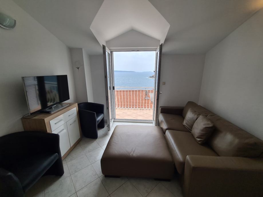 Stanovanje v 2. nadstropju (v dobrem stanju), 41 m² + 30 m² terase, dve spalnici, kuhinja z dnevno sobo, kopalnica, odprt pogled na morje, klimatska naprava.