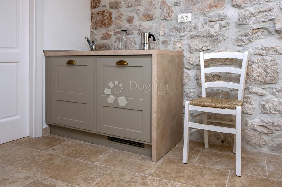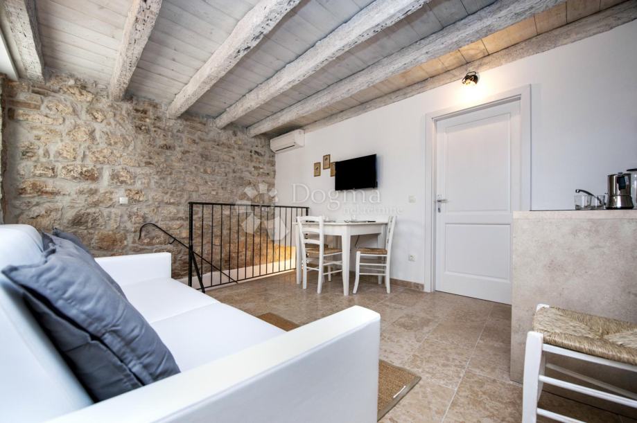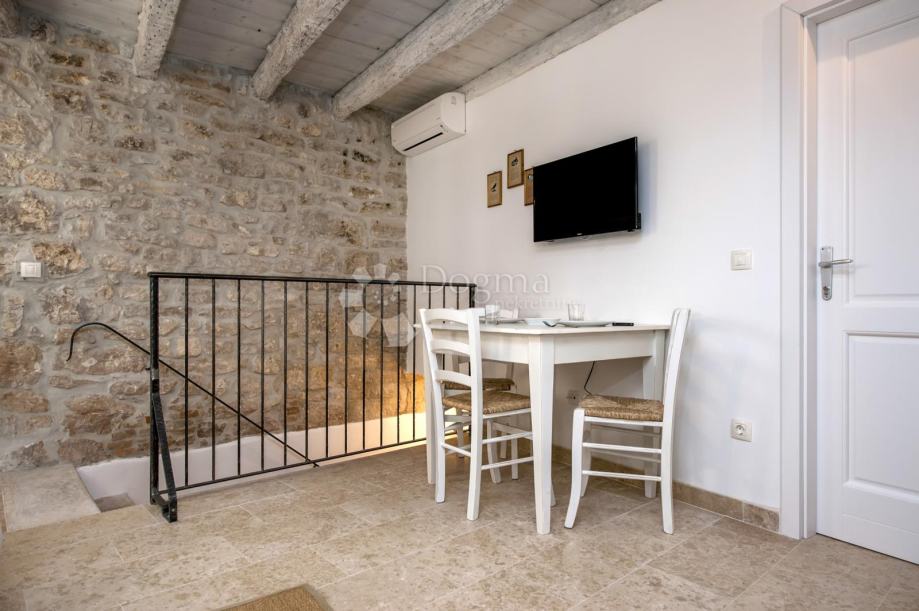 Nepremičnina se nahaja v samem središču starega mestnega jedra Rovinja, na idealni lokaciji, ki omogoča enostaven dostop do vseh znamenitosti in dobrin. Nahaja se le 200 metrov od čudovitih plaž, zaradi česar je popoln kraj za počitnice. Ne glede na to, ali iščete družinsko hišo ali naložbo, ta nepremičnina ponuja vse. Stavba je sestavljena iz treh dobro opremljenih in opremljenih stanovanj. Vsak apartma nudi udobno namestitev s sodobno opremo, vključno s kuhinjo, dnevno sobo in kopalnico. Prostor je osvetljen z naravno svetlobo s pogledom na slikovite ulice Rovinja. Notranjost apartmajev se ponaša z mešanico sodobnih in tradicionalnih oblikovalskih elementov, ki ohranjajo lokalno kulturo. Najdete lahko očarljive tramove, ploščice in okusno pohištvo, ki izboljša splošno estetiko. Zunanjost hiše je očarljiva, s tradicionalno arhitekturo. Staro mestno jedro Rovinja je bogato z zgodovino, s kamnitimi ulicami, zgodovinskimi cerkvami in umetniškimi galerijami. Območje je polno očarljivih restavracij, kavarn in trgovin. Lokacija privablja številne obiskovalce skozi vse leto, kar zagotavlja stabilen vir dohodka, če se odločite za najem. Seveda lahko s tremi apartmaji ustvarite dohodek od več gostov hkrati, kar lahko bistveno poveča skupni letni prihodek. Glede na povpraševanje po namestitvah na tem območju cene najemnin običajno ostanejo stabilne ali pa rastejo, zaradi česar je ta naložba dolgoročno donosna. Kot lastnik nepremičnine v Rovinju imate priložnost postati del lokalne skupnosti, uživati v lokalni kulturi in tradiciji ter tako sebi kot svojim gostom zagotoviti pristno doživetje. Odlična naložba s potencialom visoke donosnosti in dolgoročnega uspeha. Za vse dodatne informacije in/ali ogled se z zaupanjem obrnite na mobilno številko: