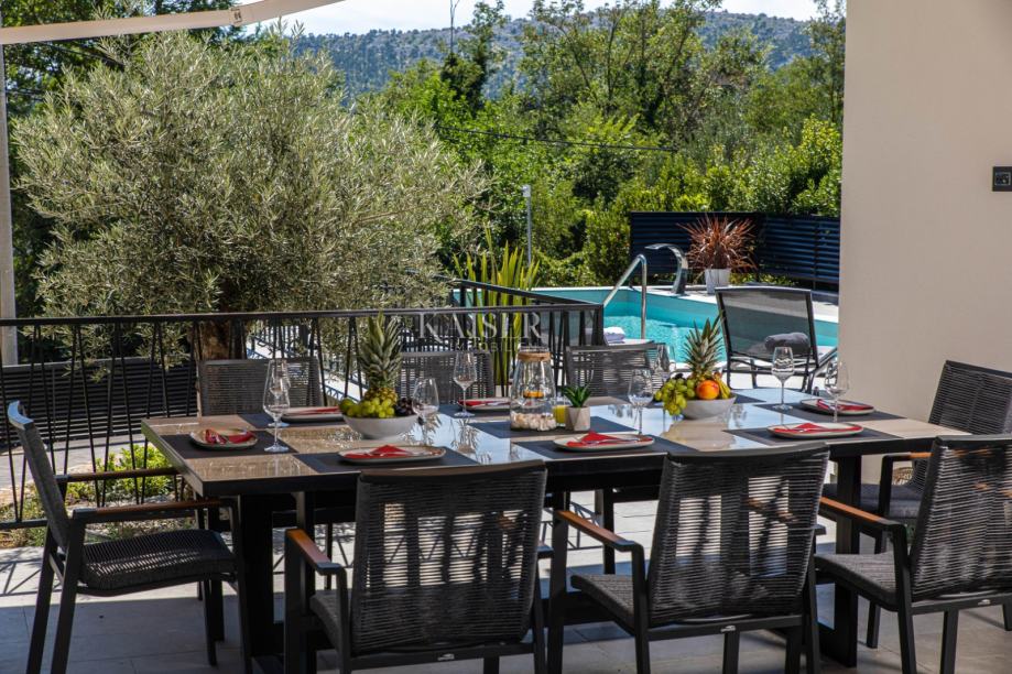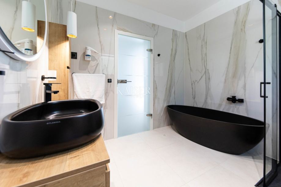 Kaiser Immobilien predstavlja čudovito vilo v Vinodolski dolini. Ta izjemna nepremičnina, zgrajena s skrbno izbranimi materiali leta 2019, ponuja popolno zasebnost in je obdana z zelenjem, zaradi česar je popoln dom ali naložba. Ključne lastnosti: Neto bivalna površina: 170 m2 Sestavljeno iz: Open space koncept dnevne sobe, kuhinje in jedilnice Štiri prostorne spalnice Tri moderne kopalnice Jacuzzi in savna za popolno sprostitev Zunanji prostor: Žar prostor za uživanje v druženju Otroško igrišče za najmlajše Bazen 34 m2 za osvežitev Prostoren prostor za sončenje za sprostitev Veliko parkirišče za več vozil Lokacija: Vila se nahaja v neposredni bližini pomembnih vsebin, dobre cestne povezave pa jo naredijo izjemno dostopno. Reško letališče je oddaljeno le 12 km, medtem ko je obala Crkveničke riviere oddaljena le 5 km. Ta čudovita vila je popolna kombinacija razkošja, zasebnosti in udobja, zaradi česar je idealna naložba za družinsko hišo ali turistični najem. Za dodatne informacije ali dogovor za ogled nas kontaktirajte.