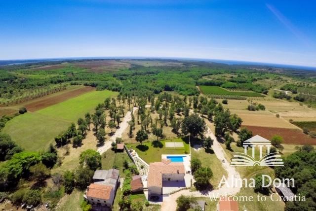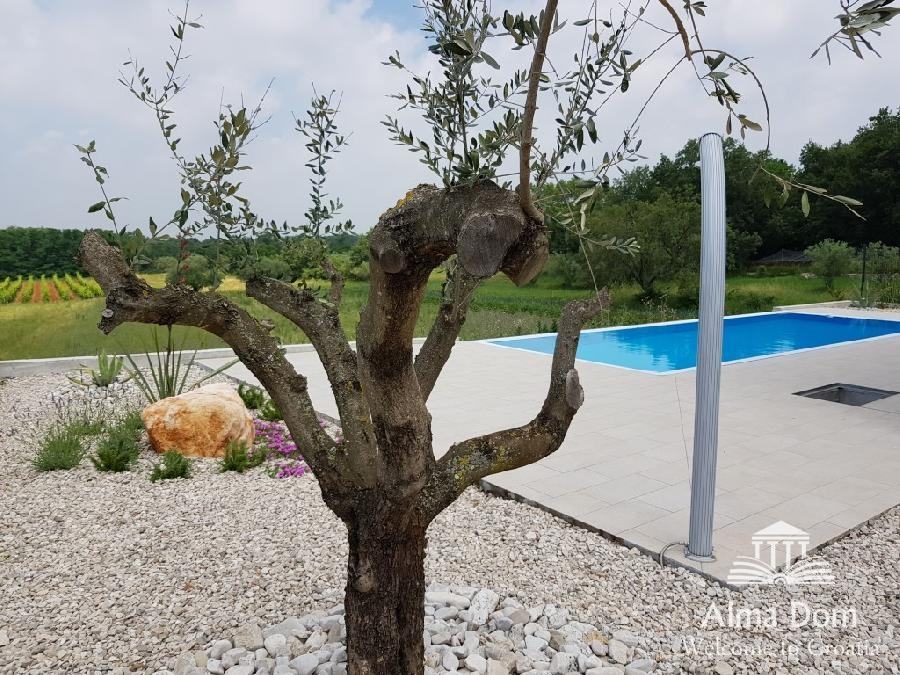 Dvorišče krasijo avtohtone sredozemske rastline, bazen površine 40 m2 in žar.