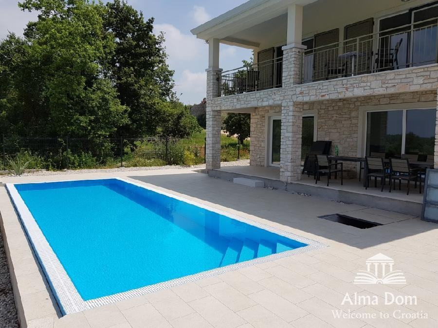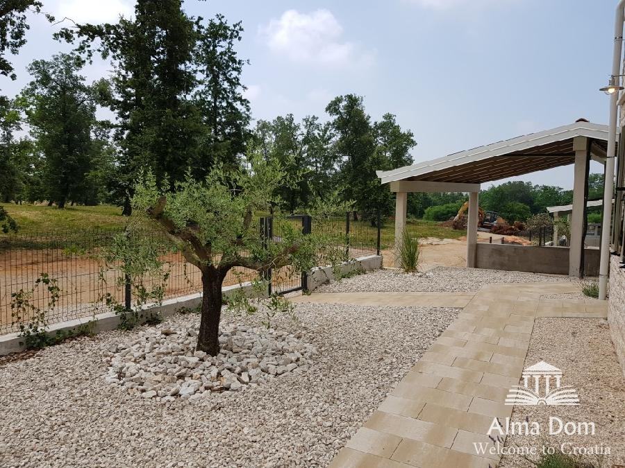 Zgrajena je bila v kombinaciji istrskega kamna in toplotno izolacijske fasade z najkvalitetnejšimi materiali za doseganje vrhunske energetske učinkovitosti stavbe (A +).