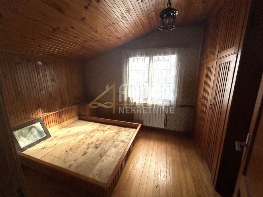 Nadstropje obsega kuhinjo, dnevno sobo, tri sobe in stranišče. V visokem podstrešju je ena soba.