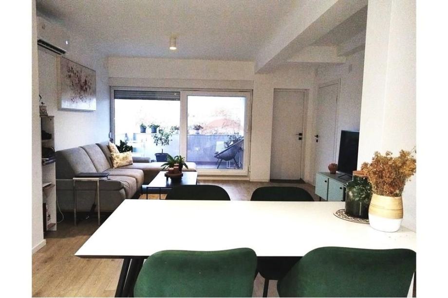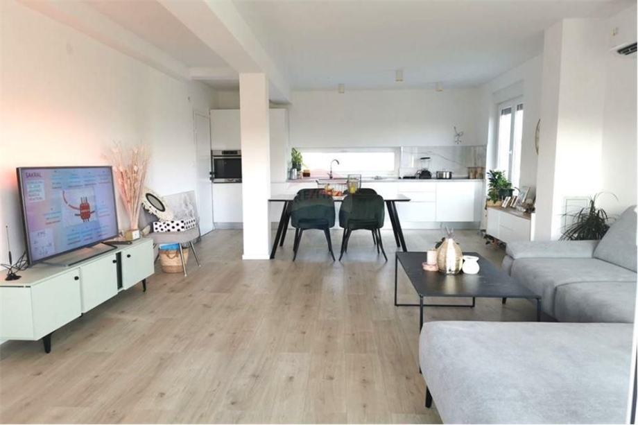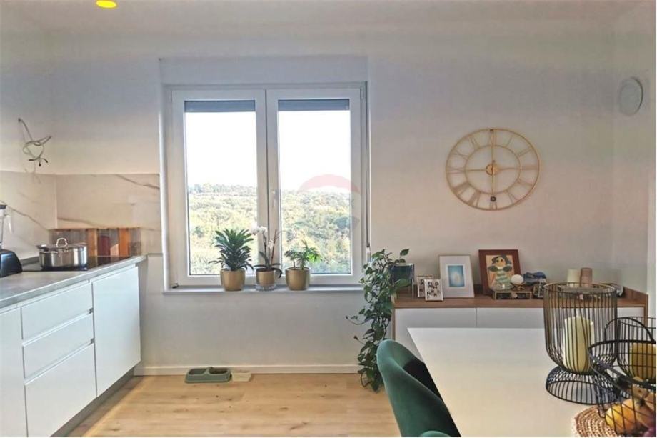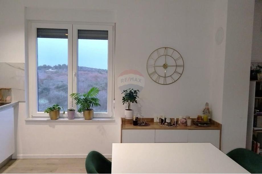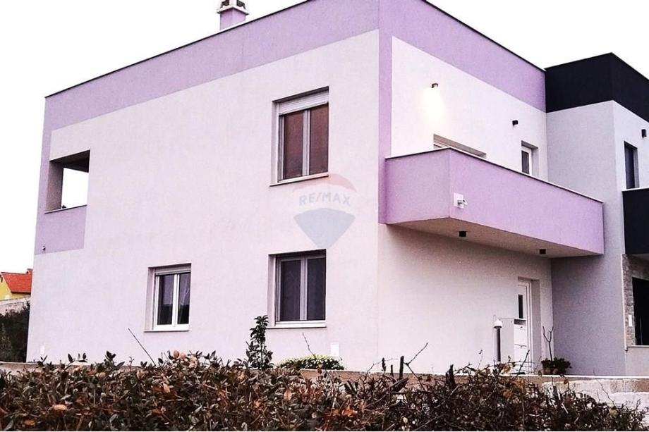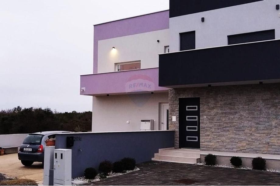 Bruto površina stanovanjskega dela je 138,00 m2 + strešna terasa 43 m2, moderne arhitekture, s čudovitim pogledom na zelenico in Velebit, v mirnem in prijetnem okolju manjših urbanih vil.