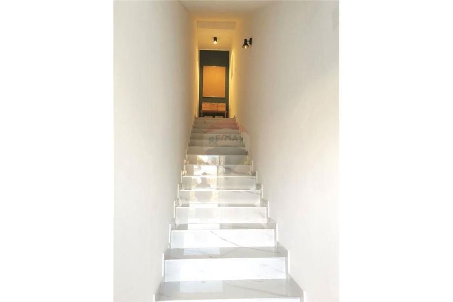 V pritličju so 3 spalnice in kopalnica, v nadstropju pa "open space" kuhinja, jedilnica in dnevna soba z balkonom in ložo ter kopalnica. V kopalnicah je talno ogrevanje.