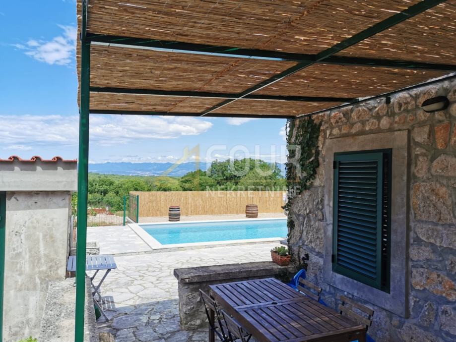 V mirnem in sproščenem okolju je naprodaj čudovita samostojna kamnita hiša z bazenom, ki se nahaja na prostorni parceli velikosti 913 m².