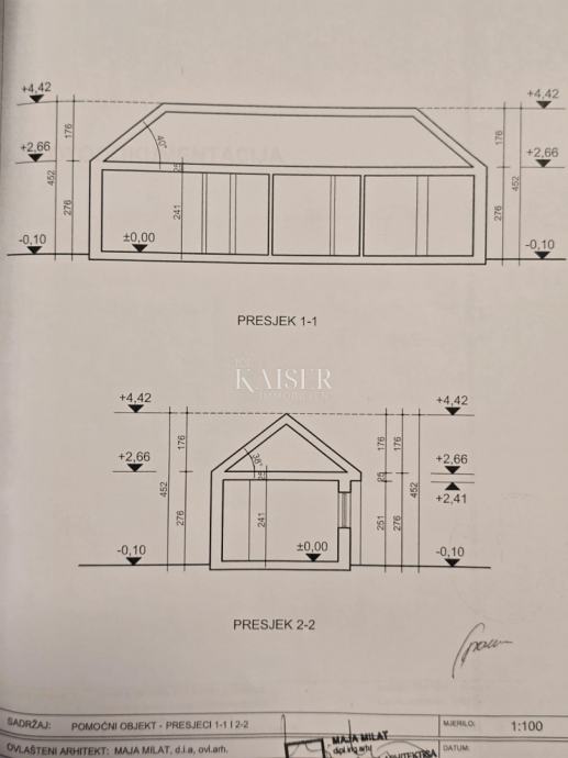 Kaiser Immobilien predstavlja: Hiša z dvema ločenima stanovanjema in odprtim razgledom, Zablaće. Naprodaj je samostojna hiša z dvema popolnoma ločenima stanovanjema, ki se nahaja na izjemno mirni in privlačni lokaciji v Zablaću, le 300 metrov od morja in lepo urejene plaže. Ta nepremičnina je idealna priložnost za večjo družino ali kot naložba za turistični najem, saj ponuja zasebnost in bližino vseh potrebnih ugodnosti, kot so plaže, sprehajališča, trgovine in kavarne. O NEPREMIČNINI: Hiša je zgrajena na prostorni parceli velikosti 400 m², s skupno površino 264 m². Sestavljena je iz pritličja in zgornjega nadstropja ter vsebuje dve ločeni stanovanji, kar zagotavlja fleksibilnost in udobje. Na parceli je bil zgrajen tudi pomožni objekt kot samostojni objekt s tlorisno površino 49,86 m², s tremi vhodi, ki se uporablja kot letna kuhinja, pralnica in shramba. RAZPOREDITEV: Stanovanje v pritličju: Sestavljeno je iz kuhinje, jedilnice in dnevne sobe v odprtem konceptu. Dve udobni spalnici in kopalnica. Dve praktični shrambi. Garaža in shramba v pritličju z neposrednim dostopom do stanovanja. Stanovanje v prvem nadstropju: Dostop je omogočen po notranjem stopnišču (marmor). Sestavljeno je iz prostorne dnevne sobe z dostopom do velike 19 m² terase, ki ponuja čudovit, odprt pogled na morje. Kuhinja in jedilnica, dve spalnici in kopalnica. DODATNE PREDNOSTI: Fasada je zgrajena iz naravnega belega kamna. Zunanje stavbno pohištvo je iz aluminija in lesa. Streha je v odličnem stanju, obnovljena pred nekaj leti. Oba stanovanja sta klimatizirana, opremljena in takoj vseljiva. Pred hišo je urejen vrt in več dodatnih parkirnih mest. Dokumentacija nepremičnine je urejena (Odločba o izvedenem stanju, urejen lastniški list). LOKACIJA: Zablaće ponuja mirno okolje, idealno za sprostitev, a tudi odlične povezave z večjimi mesti in turističnimi znamenitostmi. Bližina morja in dobro vzdrževanih plaž naredi to nepremičnino idealno izbiro za tiste, ki iščejo mediteranski življenjski slog. Ne zamudite te izjemne priložnosti, da postanete lastnik nepremičnine z velikim potencialom, bodisi za bivanje bodisi za turistični najem! Provizija agencije za kupca znaša 3 % + DDV in se plača v primeru nakupa nepremičnine, ob sklenitvi prve pravne listine. Ogled nepremičnine je možen le ob predhodnem podpisu pogodbe o posredovanju pri prometu z nepremičninami. Če si želite nepremičnino ogledati osebno, se obrnite na: Joška Bašića E-pošta: josko@kaiser-immobilien.hr Tel: +385-91-511-2993 http://kaiser-immobilien.hr/