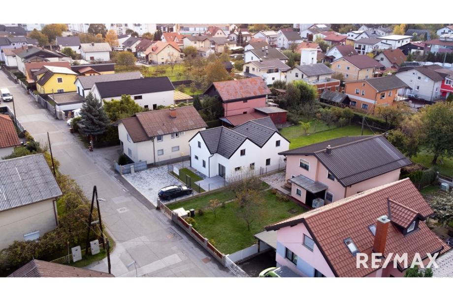 VELIKOST PARCELE: 416 m2- parcela pod hišo in velika zelenica za hišo (vse zazidljivo zemljišče) + polovično lastništvo parcele za vhod in parkinge (skupaj 121 m2)