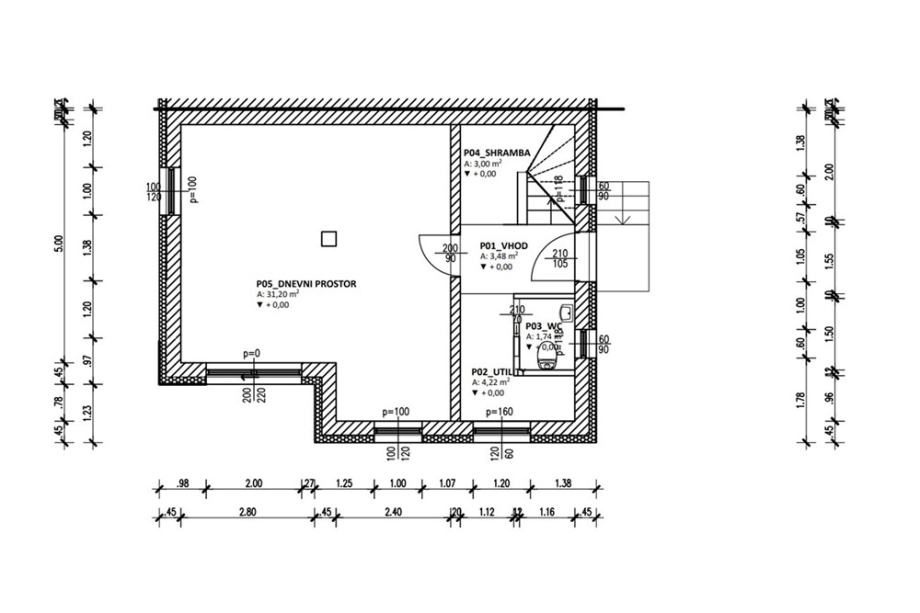BRUTO TLORISNA POVRŠINA HIŠE: 121,20 M2, uporabna površina hiše: 88,9 m2 (bivalni prostor 85,9 m2 shramba, sušilnica, pralnica 3,0 m2)