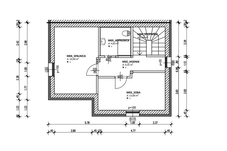 - Izolacija strehe: Strop v mansardi je izoliran s kameno volno
