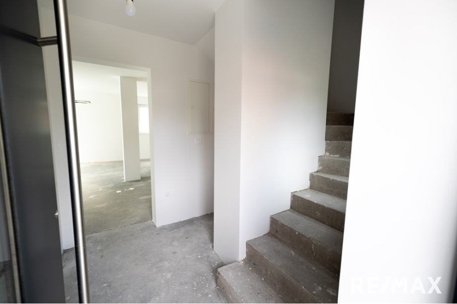 Etažnost pritličje + prvo nadstropje- sodoben tloris. V pritličju je velik dnevni prostor (dnevna soba, jedilnica, kuhinja) z izhodom na teraso, ob vhodu v hišo je utility-prostor s priključkom za pralni stroj , wc za goste in prostor za toplotno črpalko. V prvem nadstropju je ena večja soba, ena manjša soba, povezovalni hodnik in kopalnica.