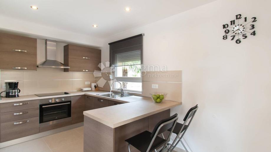 Prav v Kaštelirju se nahaja ta čudovita vila z bazenom na parceli 1538 m2. Vila je sestavljena iz 3 spalnic, odprtega koncepta dnevne sobe in jedilnice z lepo popolnoma opremljeno kuhinjo in 2 kopalnic. Dnevna soba vodi v širok zunanji prostor z namiznim nogometom, biljardom, pikadom, žarom in prijetnim prostorom za otroke. Vrt je urejen z ljubeznijo in pozornostjo ter ponuja dovolj prostora za vsakogar. Na voljo je pokrita zunanja kuhinja z jedilno mizo, zasebni bazen s slano vodo in oljkami.