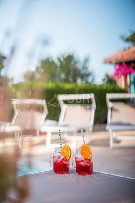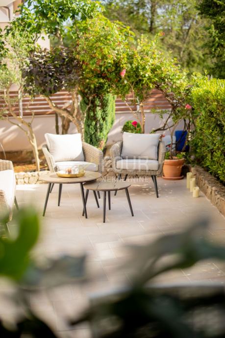 Dvorišče je ograjeno, v čudovitem vrtu pa se nahaja bazen s prostorom za sončenje in ležalniki. Urejen zunanji prostor vključuje tudi žar na oglje, idealen za poletne večere.