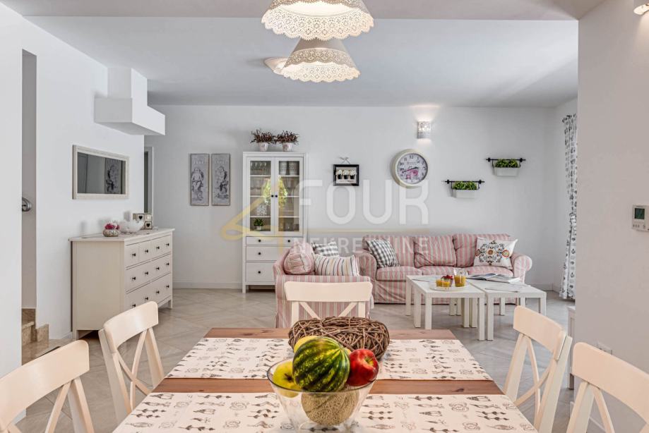 Sestoji se iz kuhinje z jedilnico in dnevnega prostora v odprtem prostoru z izhodom na teraso in vrt, 4 spalnice z lastnimi kopalnicami.
