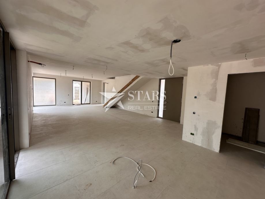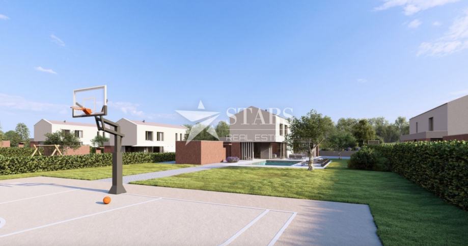 Pritličje odlikuje prostoren odprti koncept, ki združuje sodobno kuhinjo, elegantno jedilnico in udobno dnevno sobo – popolno za družinska srečanja ali zabave s prijatelji. Dodatno pritličje vključuje notranje in zunanje shrambe, namenski prostor za fitnes ali savno ter dostop do čudovite pokrite terase z letno kuhinjo. Zunanji prostor dopolnjuje ogrevan bazen velikosti 48 m² z masažnim delom.