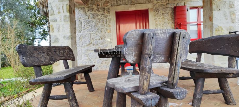 Kaiser Immobilien predstavlja čudovito vrstno hišo z bazenom in gospodarskim poslopjem nedaleč od morja. Nepremičnino sestavljata vrstna hiša in pomožni objekt namenjen druženju v skupni kvadraturi 250 m2. Prostoren vrt obsega 2.250 m2 in je dobro izkoriščen. Zaseben vhod vodi do prostornega parkirišča, ki lahko sprejme ducat avtomobilov ali se ga uporablja drugače. Dvorišče je polno različnih rastlin, zelo dobro vzdrževano in ponuja različne kamnine, ki so ostale na terenu in so sedaj odlično vključene v celoten objekt. Hiša je sestavljena iz pritličja in prvega nadstropja, kuhinje z jedilnico in dnevno sobo, dveh spalnic s kopalnico in straniščem. Pokrita terasa se razprostira pred vhodom, medtem ko se savna nahaja na koncu hiše. Odlična povezljivost hiše vam omogoča preživljanje časa na svežem zraku v vaši oazi. Koncept hiše in njen istrski videz s peščico kamnitih zidov in barvitimi okni ustvarja vtis nepremičnine v srcu Istre. Ogrevanje je preko klimatskih naprav in peči na drva. Dodatni objekt je pozicioniran tik ob bazenu in je zasnovan kot prostor za druženje z zunanjim kaminom. Stavba je sestavljena iz dveh spalnic, kuhinje, kopalnice in stranišča. Bazen obsega 79 m2 in je zaradi svoje velikosti in okolja resnično edinstven. Nedaleč od njega se nahaja tudi mali istrski kažun, namenjen druženju in zabavi. Hiša je čudovit dom na odlični celoletni lokaciji, nepremičnina ponuja veliko potenciala in zahteva minimalna vlaganja v notranjo opremo. Številne plaže in zalivi, promenade in restavracije so le 10 minut vožnje stran. Središče Labine je le 10 minut vožnje stran in ponuja peščico aktivnosti na dosegu roke. Za več informacij kontaktirajte agenta.