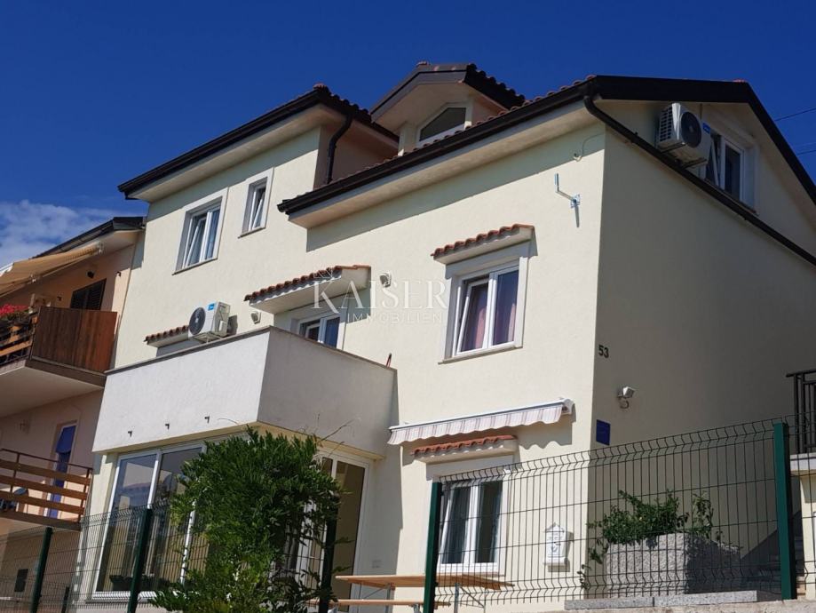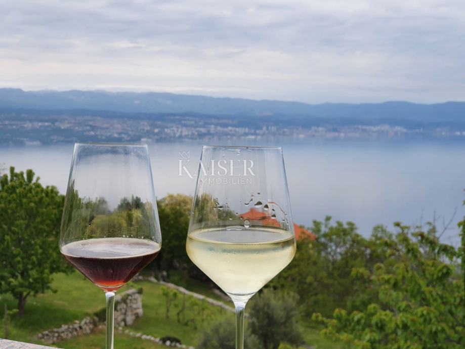 Kaiser Immobilien prodaja veliko hišo s tremi stanovanji na odlični in mirni lokaciji le pet minut od Lovrana. Hiša ima teraso s čudovitim pogledom na Kvarner. Obdana je z zelenjem, na vrtu pa ima svoj manjši zasebni sadovnjak. Hiša je dvojček, vendar ima lasten asfaltni dovoz.
