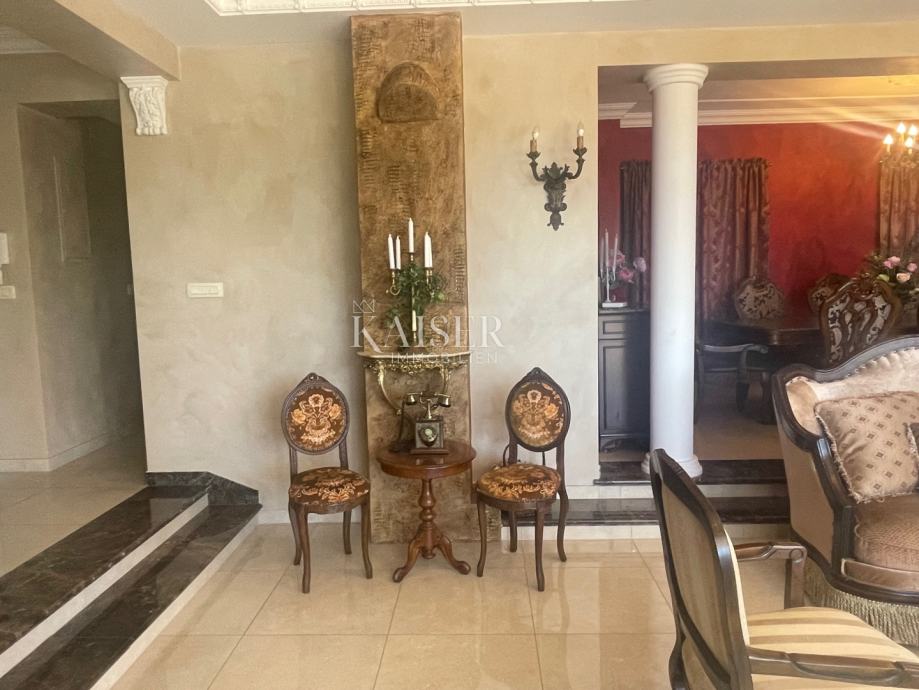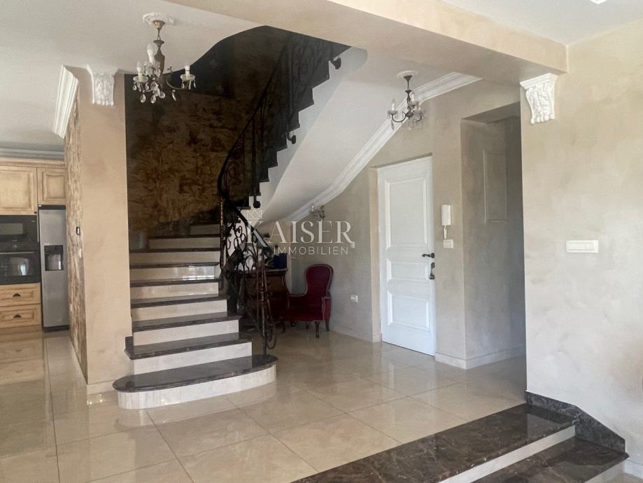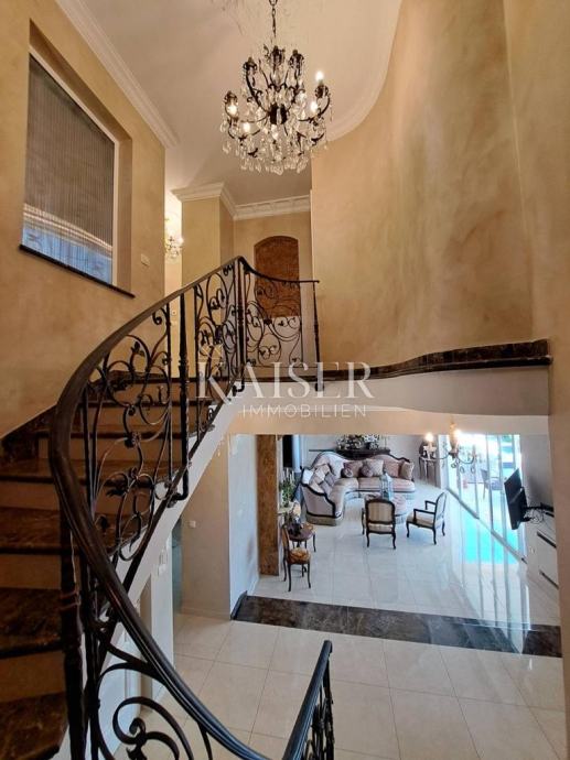 Kaiser Immobilien predstavlja moderno in luksuzno stanovanjsko vilo s 5 ločenimi stanovanjskimi enotami v delu Lovrana, le nekaj minut hoje od centra in morja. Vila je bila zasnovana kot stanovanjsko-turistični objekt in sestoji iz elegantnega dvonadstropnega apartmaja s površino cca 250 m2, ki ga sestavlja prostorna dnevna soba v spodnjem nivoju, iz katere je dostop do velika terasa z odprtim pogledom na morje, medtem ko so v prvem nadstropju tega stanovanja 4 spalnice, kopalnice in garderoba. Drugi del vile je sestavljen iz 4 ločenih apartmajev (3x2-sobno z dnevno sobo in teraso) in manjše garsonjere. Na vrtu vile je bazen s prostorom za sončenje in vrt. Garažna mesta za 5 avtomobilov in dodatno parkirišče pred objektom. Nepremičnina se prodaja popolnoma opremljena in zelo dobro opremljena. Celotna hiša je ogrevana s kombinacijo centralnega, talnega in solarnega ogrevanja ter je opremljena s klimatsko napravo. Vila glede na lokacijo predstavlja velik turistični potencial za turizem in je lahko idealno manjše gostišče za družinsko podjetje. Za vse dodatne informacije kontaktirajte agenta.