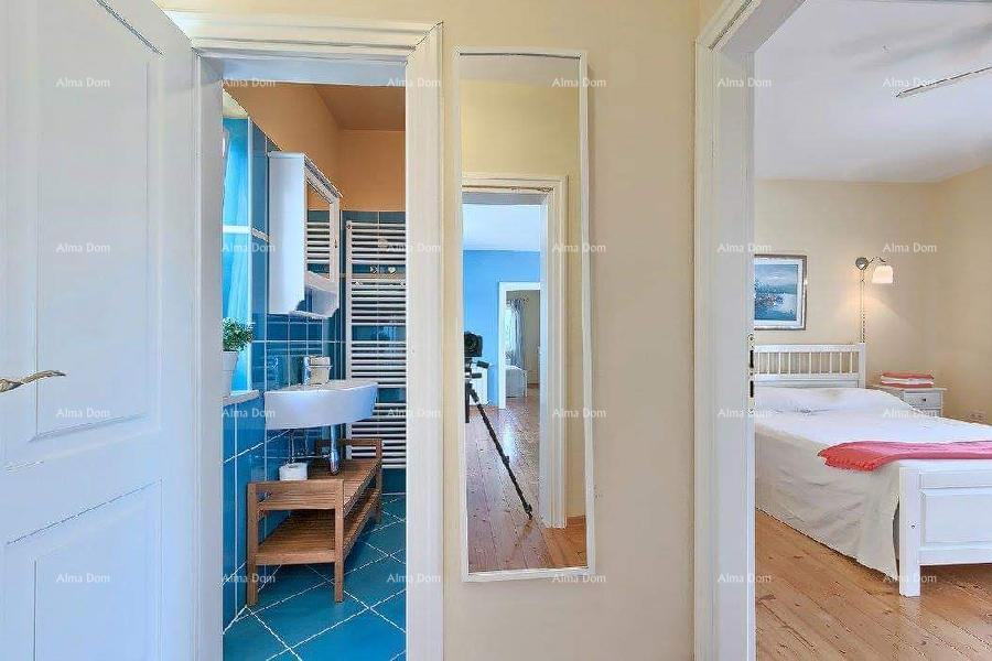 V prvem nadstropju je predprostor, dnevna soba 45 m2, spalni del.