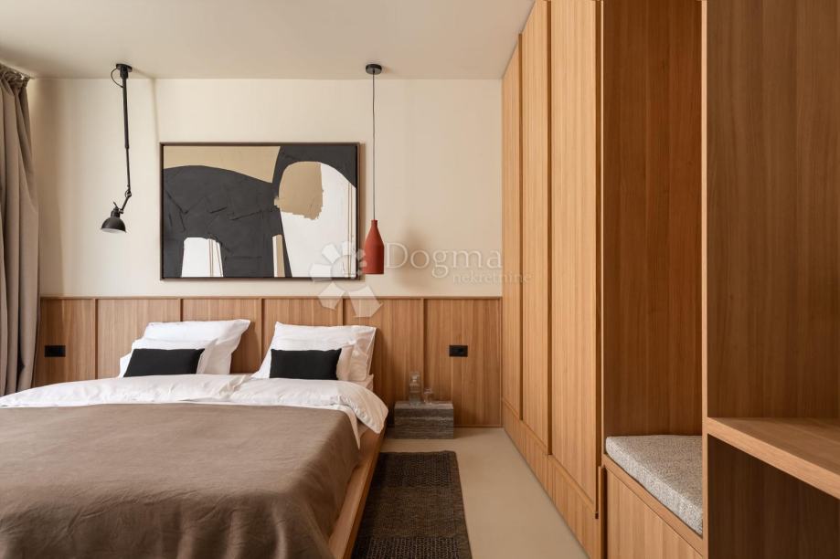 V pritličju se nahaja prostoren dnevni prostor odprtega tipa z velikimi steklenimi stenami, ki se odpirajo proti bazenu in vrtu, ter popolnoma opremljena moderna kuhinja z jedilnico. Vila ima šest elegantno opremljenih spalnic, vsaka s svojo kopalnico. Dodatno ponuja bilar sobo, savno in jacuzzi, kar še poveča občutek razkošja in sprostitve.