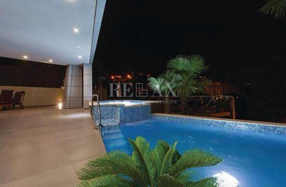 V drugem nadstropju je prostorna spalnica, kopalnica, jacuzzi in telovadnica ter 90 m2 velika terasa z impresivnim pogledom na morje.