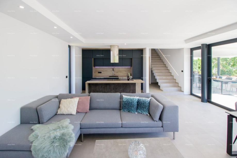 Na prodaj je moderna in luksuzna vila, ki se nahaja v prelepi vasici Peroju. Vila se razprostira na zemljišču velikosti 910 m², z 282,89 m² bivalne površine, ki se razprostira v dveh etažah: pritličju in prvem nadstropju.